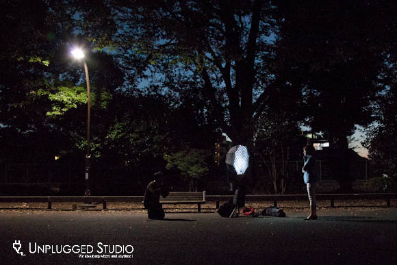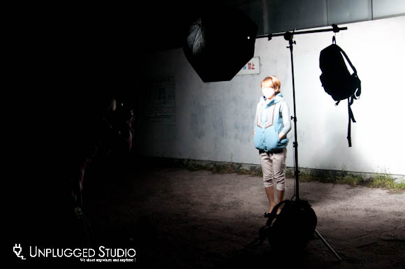 それで今回はストロボ一本、ソフトボックス(オクタゴン)でどこまでやれるかやってみた。この「どこまで」というのはその場所に合わせてスピーディーにライティングセットして撮るってこと。これはアドリブ力のトレーニングもかねているんだけどこれが毎回試されているような気がしてハラハラする。