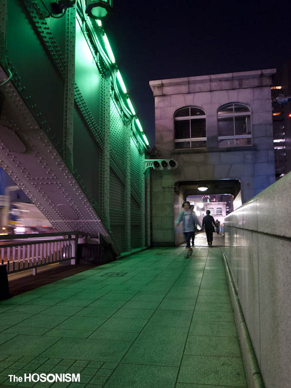 それであまり好きではないのだけど「夜の勝ちどき橋」は嫌いではない。単に「綺麗だから」というミーハーな理由でそれ以上でもそれ以下でもない。強いて言うなら平日のこの時間この橋を渡る人たちというのは生活の一部としてこの橋を使っている光景は人工的な再開発の中で唯一血が通っているように見えるからだろう。